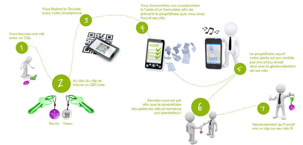 Le Clip est la solution design, durable, moderne, facile, anonyme et sécurisée pour récupérer vos objets en cas de perte. Le Clip est un concentré de technologie, que vous pouvez accrocher à tous les objets que vous risquez de perdre bagages, sacs, clés, smartphone, tablettes, vêtements, poussettes, vélos, parapluie... Si votre objet est retrouvé, la personne l'ayant trouvé peut, grâce au clip, vous prévenir immédiatement via un petit message sms ou email, de la bonne nouvelle tout en géolocalisant la trouvaille !